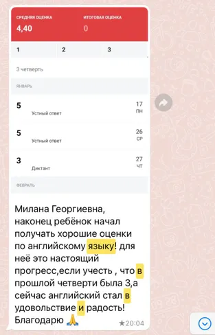 На занятиях ставит главной целью помочь школьнику разобраться во всех тонкостях русского языка, понять и полюбить многообразие его форм, богатство и красоту.